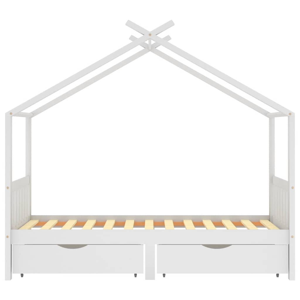 Kinderbett mit Schubladen Weiß Massivholz Kiefer 90x200 cm