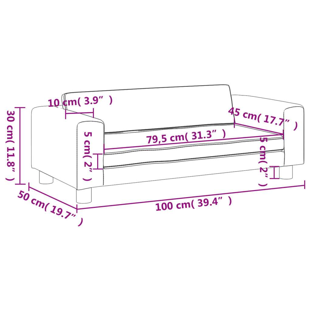 Das Mini-Sofa ist mit weichem Schaumstoff gepolstert und mit hochwertigem Kunstleder bezogen (100 % Polyurethan). Es fühlt sich angenehm an, ist zugleich robust und lässt sich ganz leicht abwischen – perfekt für kleine Kinderhände und den täglichen Gebrauch