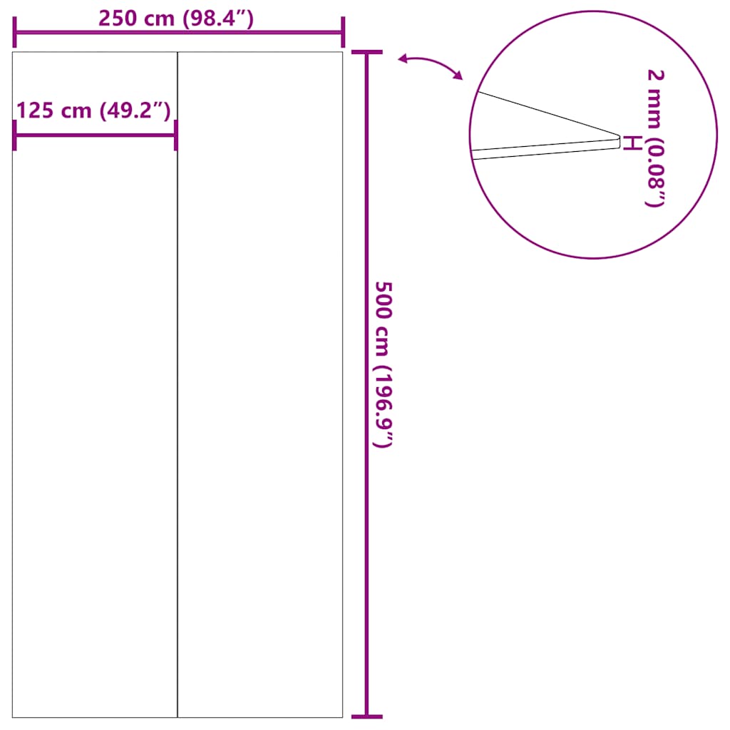 - Gesamtgröße: 500 x 250 cm (L x B)