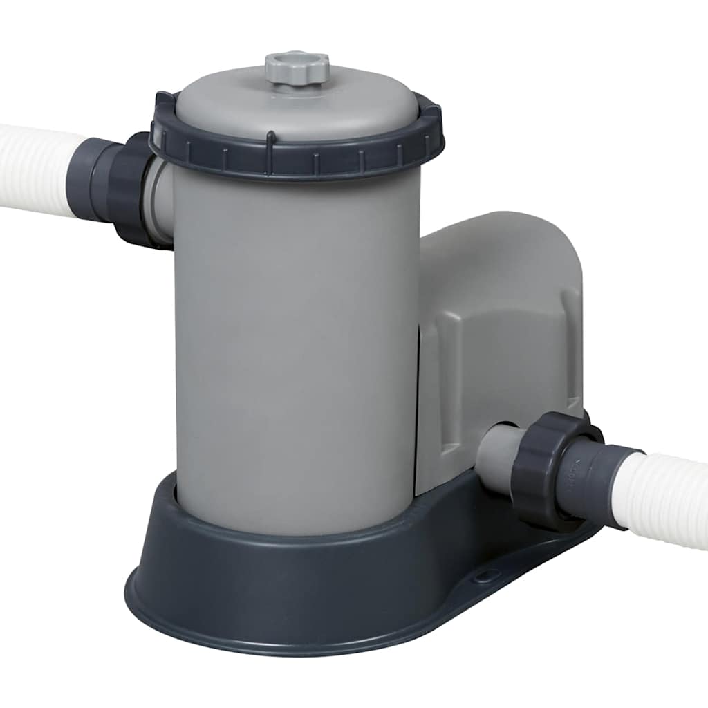 Zum Set gehört eine Filterpumpe mit 5.678 Litern/h Leistung, die dafür sorgt, dass dein Wasser stets klar bleibt. Die im Lieferumfang enthaltene antimikrobielle Filterkartusche (Größe III) hemmt das Wachstum von Algen, Bakterien und Schimmel im Wasserkreislauf.