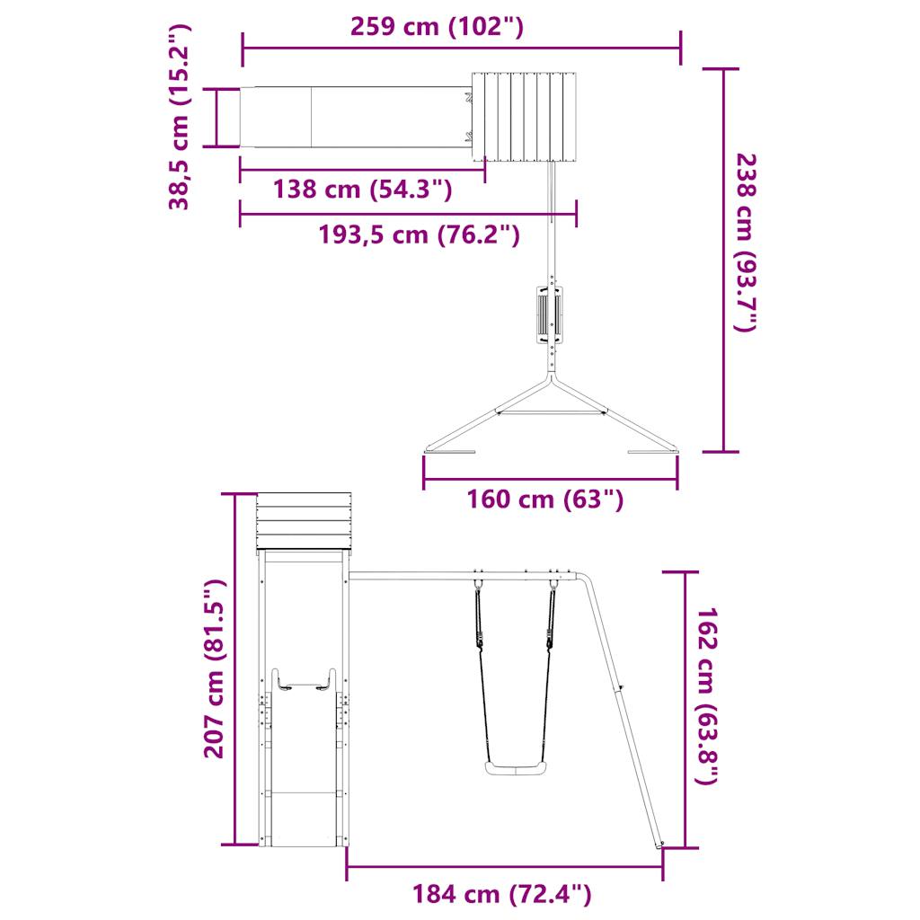 Mit Abmessungen von 238 x 259 x 207 cm (L x B x H) bietet der Spielturm alles, was ein guter Spielplatz braucht – auf kleinem Raum. Deine Kinder können sich hier auf viele Arten austoben: